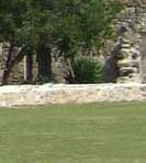 | サンホセ教会の次はサンフワン教会(サンファン教会)を見学しました。広い敷地内の回りには、歩きやすいようにアスファルトの道が作られていましたので、とにかく左回りにここを歩いてみることにしました。ここにも塀のようにぐるっとかつての住居の跡がありましたが、土台しか残っていませんでした。しかし先にサンホセ教会を見学していましたので、住居の様子は想像することができました。 |